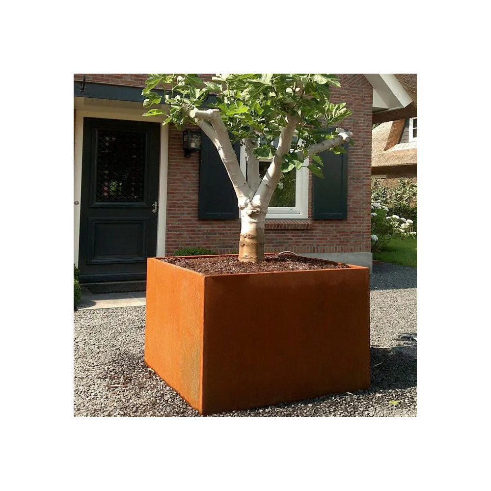 Bac carréen acier corten 50 x 50 x 50 cm (21kg) x80cm (30kg) x100cm (37kg)