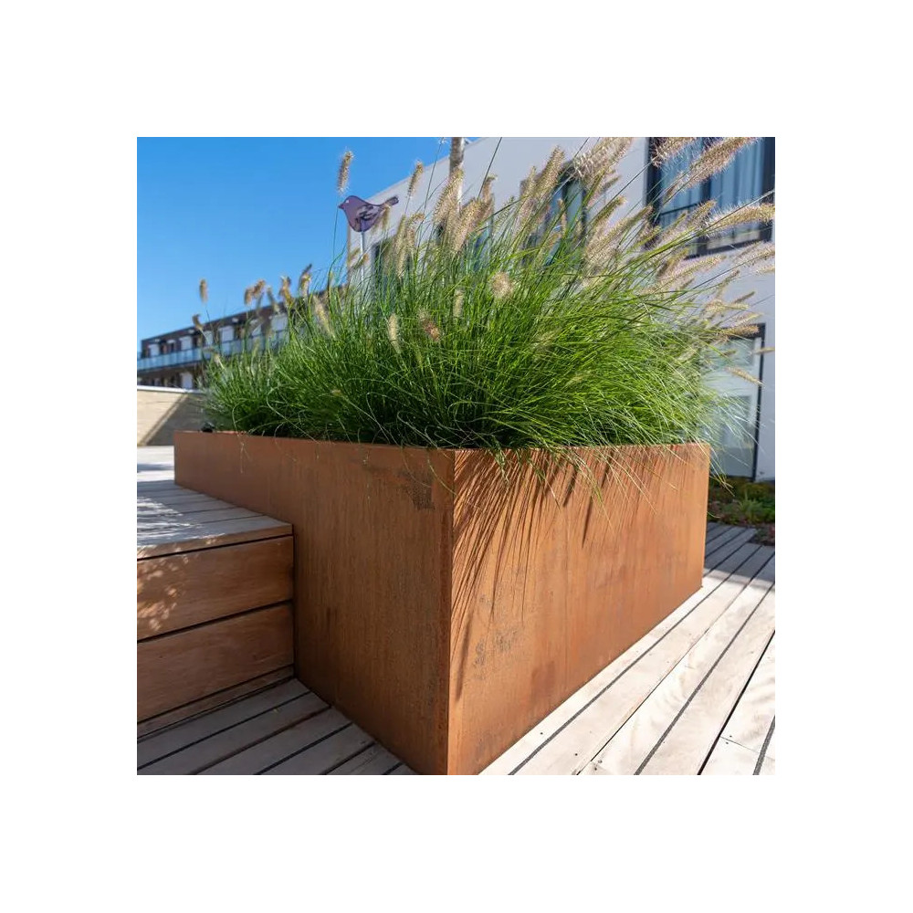 La jardinière en acier Corten CARREZ est un élément puissant et chaleureux dans votre jardin. Cela est dû à la couleur brun-orangé du matériau que prend sa couche de rouille naturelle. Un autre nom pour l’acier Corten est l’acier patiné ou résistant aux intempéries : en effet, les conditions météorologiques auront une influence positive sur cette jardinière. L’acier Corten est un alliage de métaux composé de fer, de cuivre, de phosphore, de silicium, de nickel et de chrome. Lorsqu’il est exposé à l’air libre, le matériau se recouvre d’une couche de rouille protectrice. Cette couche de rouille naturelle protège le matériau contre une corrosion ultérieure. La jardinière lui doit sa longue durée de vie