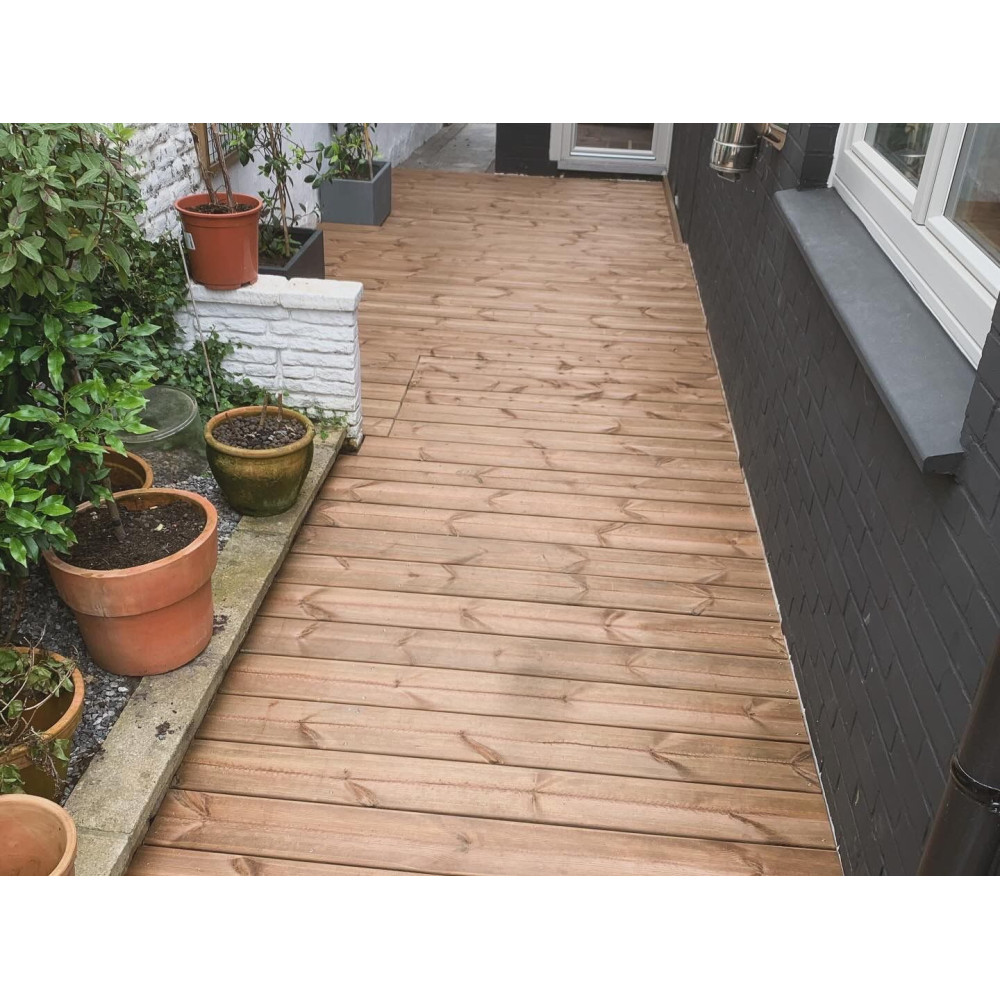 Terrasse Pin scandinave autoclavé marron : 1 face lisse 1 face striée