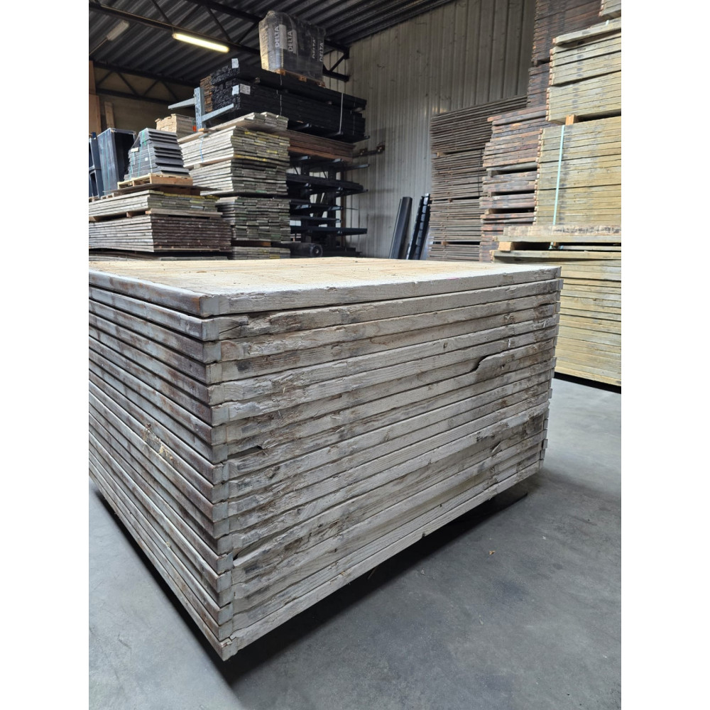 Les panneaux de coffrage sont un produit de recyclage, utilisés pour le séchage de pierres et de béton dans les usines de fabrication dédiées à ce secteur. Ces panneaux doivent supporter beaucoup de poids lors du procédé de séchage. Pour cela, les panneaux sont composés de plusieurs planches, assemblées soit avec des tiges filetées, soit avec du ferraillage, soit par une queue d’aronde, selon l’essence de bois. Un profilé en U en acier renforce toute la largeur. L’eau mélangée au béton ou aux briques imprègne le bois des panneaux et rend les panneaux très durables, solides et résistants à l’eau. Ils sont donc parfaitement adaptés à un usage extérieur.