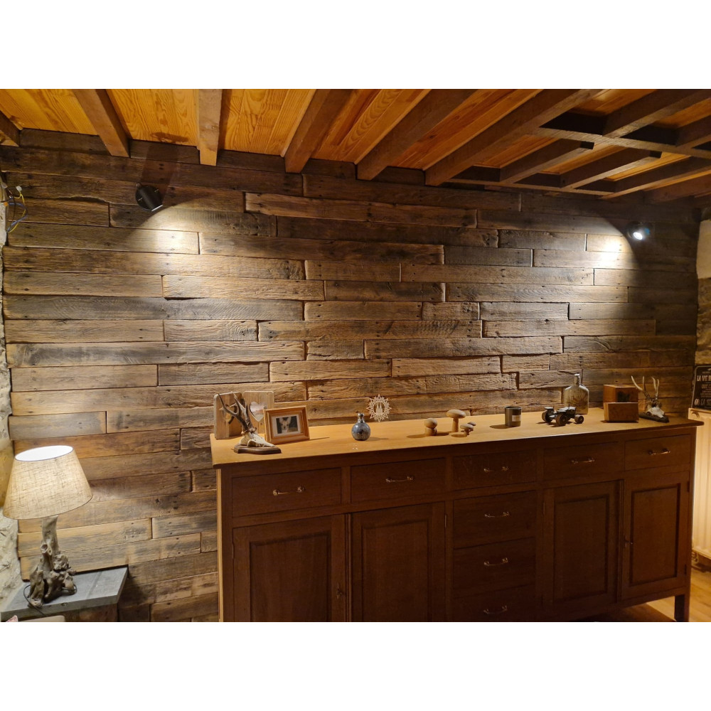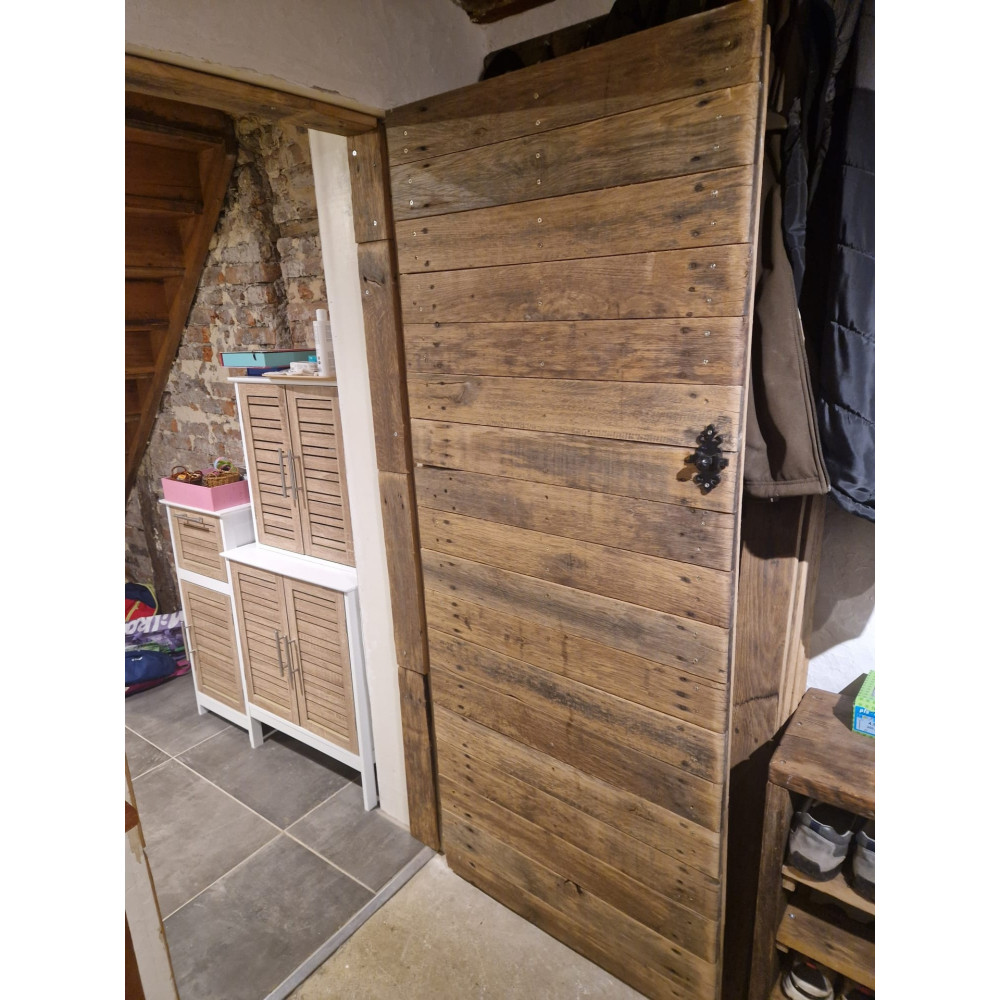 Ces planches sont issues d'anciennes caisses de fruits. Ces planches ont été largement exploités dans les champs et ont donc développé un caractère authentique. Brossées, elles ont conservés les clous d'origine pour un rendu unique.