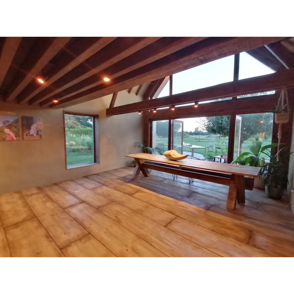 Sur demande, ce vieux plancher en pin du Jura peut être réduit en épaisseur pour s’adapter à vos besoins spécifiques.