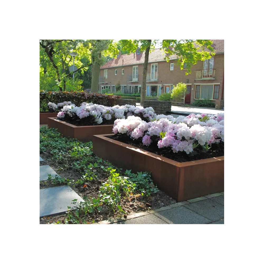 De cortenstalen plantenbak van CARREZ is een krachtig en warm element in je tuin. Dit komt door de oranjebruine kleur van het materiaal die de natuurlijke roestlaag aanneemt. Een andere naam voor cortenstaal is gepatineerd of weerbestendig staal: weersomstandigheden zullen een positieve invloed hebben op deze plantenbak. Cortenstaal is een metaallegering die bestaat uit ijzer, koper, fosfor, silicium, nikkel en chroom. Wanneer het materiaal aan de buitenlucht wordt blootgesteld, ontwikkelt het een beschermende roestlaag. Deze natuurlijke roestlaag beschermt het materiaal tegen verdere corrosie. De plantenbak dankt zijn lange levensduur aan dit materiaal.
