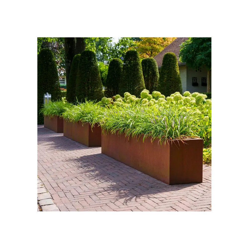 De cortenstalen plantenbak van CARREZ is een krachtig en warm element in je tuin. Dit komt door de oranjebruine kleur van het materiaal die de natuurlijke roestlaag aanneemt. Een andere naam voor cortenstaal is gepatineerd of weerbestendig staal: weersomstandigheden zullen een positieve invloed hebben op deze plantenbak. Cortenstaal is een metaallegering die bestaat uit ijzer, koper, fosfor, silicium, nikkel en chroom. Wanneer het materiaal wordt blootgesteld aan de buitenlucht, ontwikkelt het een beschermende roestlaag. Deze natuurlijke roestlaag beschermt het materiaal tegen verdere corrosie. De plantenbak dankt zijn lange levensduur aan dit materiaal.