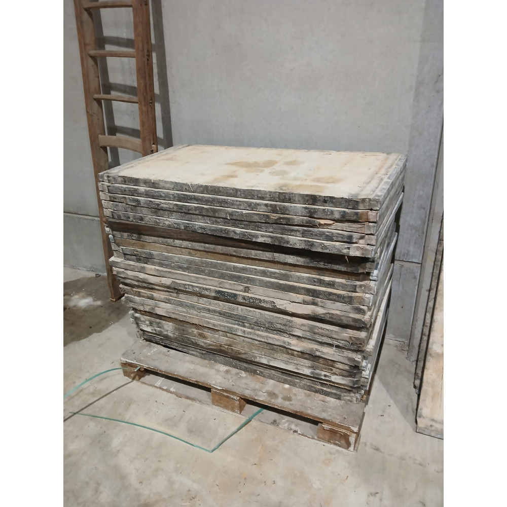 steenschotten zijn een gerecycleerd product dat wordt gebruikt voor het drogen van steen en beton in fabrieken die zich op deze sector richten. Deze panelen moeten veel gewicht dragen tijdens het droogproces. Om dit te bereiken bestaan de panelen uit verschillende planken die, afhankelijk van de houtsoort, worden samengevoegd met draadstangen, wapening of zwaluwstaarten. Een stalen U-profiel versterkt de hele breedte. Water vermengd met beton of bakstenen impregneert het hout in de panelen, waardoor ze extreem duurzaam, sterk en waterbestendig worden. Ze zijn daarom perfect geschikt voor buitengebruik.