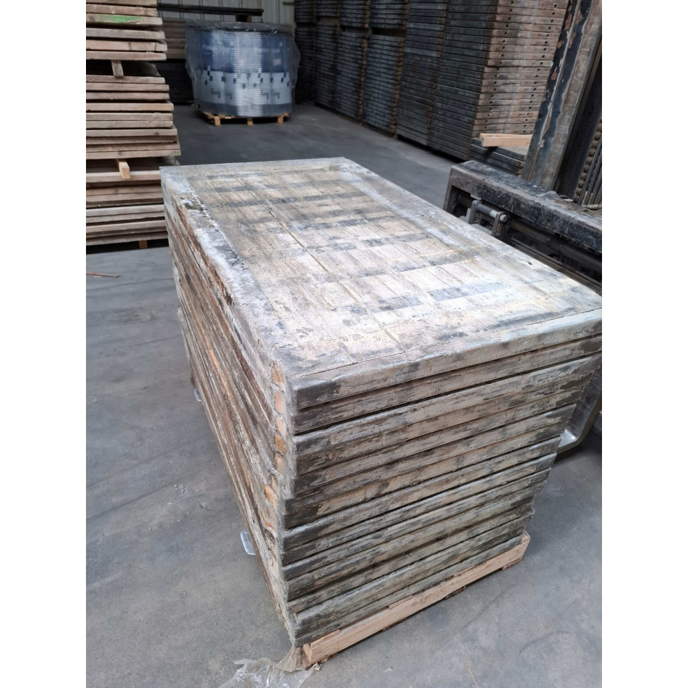 steenschotten zijn een gerecycleerd product dat wordt gebruikt voor het drogen van steen en beton in fabrieken die zich op deze sector richten. Deze panelen moeten veel gewicht dragen tijdens het droogproces. Om dit te bereiken bestaan de panelen uit verschillende planken die, afhankelijk van de houtsoort, worden samengevoegd met draadstangen, wapening of zwaluwstaarten. Een stalen U-profiel versterkt de hele breedte. Water vermengd met beton of bakstenen impregneert het hout in de panelen, waardoor ze extreem duurzaam, sterk en waterbestendig worden. Ze zijn daarom perfect geschikt voor buitengebruik.