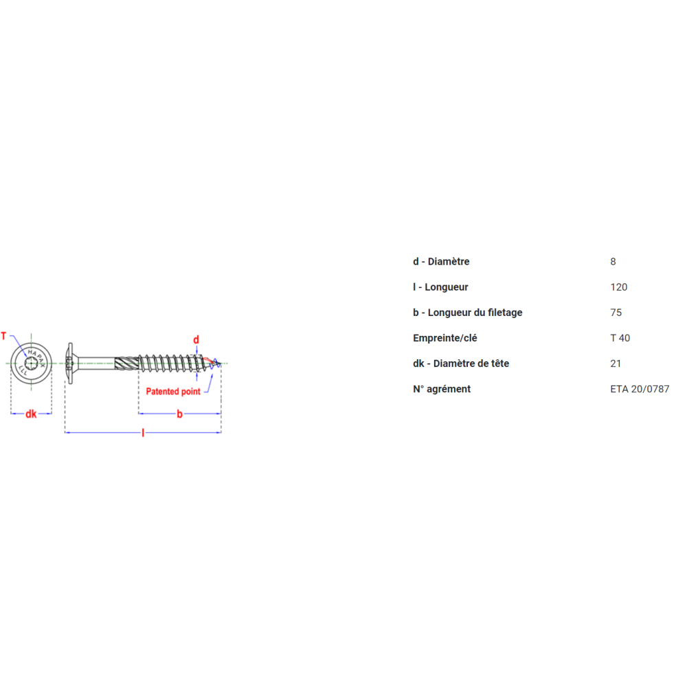 schroeven houten constructie HAPAX TD-T Ø8x120 Zn